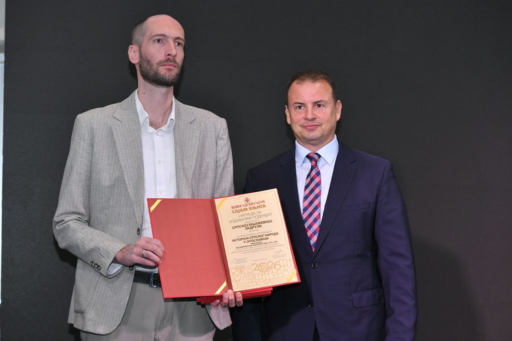 У уторак, 17. марта 2026. године, у Хали 1 Новосадског сајма, Српској књижевној задрузи додељена је Награда Сајма књига у Новом саду за издавачки подухват – монографску публикацију Историја српског народа у Југославији – прва књига: Од уједињења до Априлског рата (1918–1941) , чији су аутори Станислав Сретеновић, Душан Фундић, Драган Бакић, Војислав Павловић, Александар Милановић, Слађана Јаћимовић и Игор Борозан.